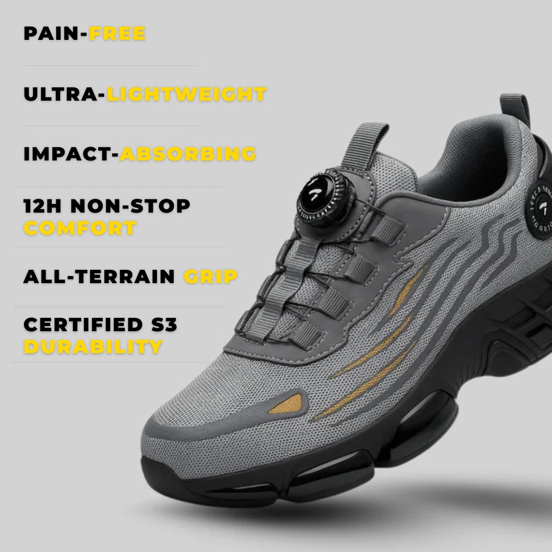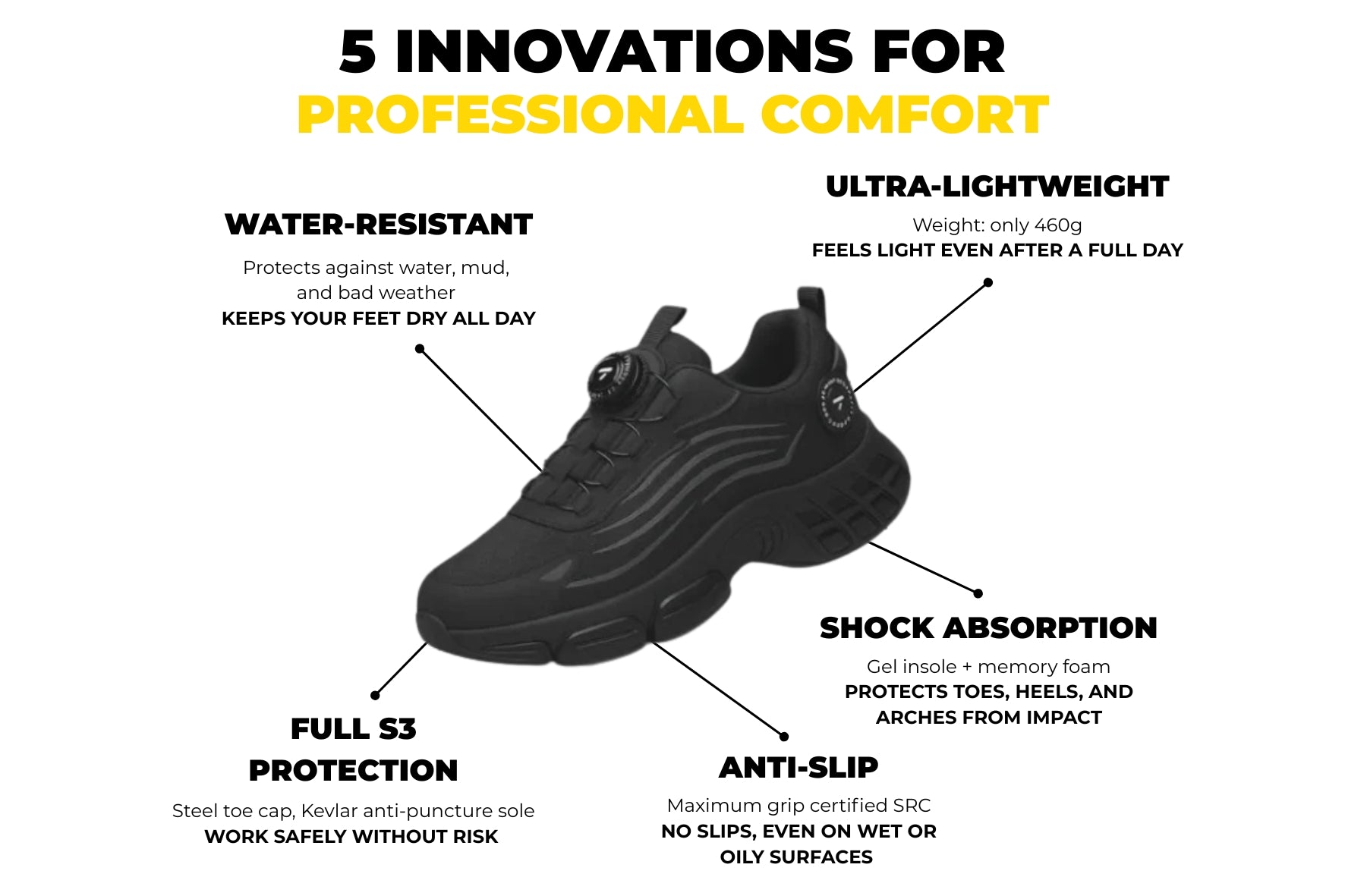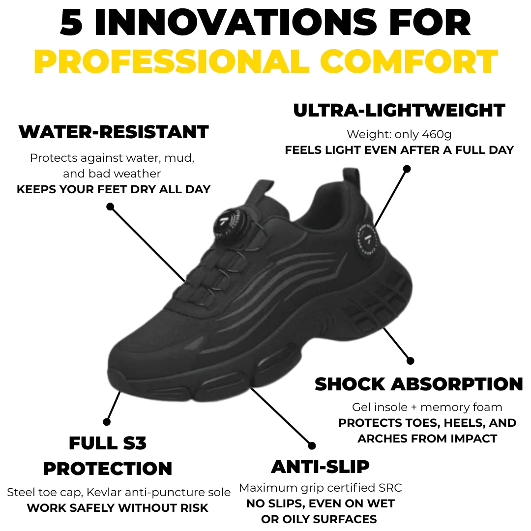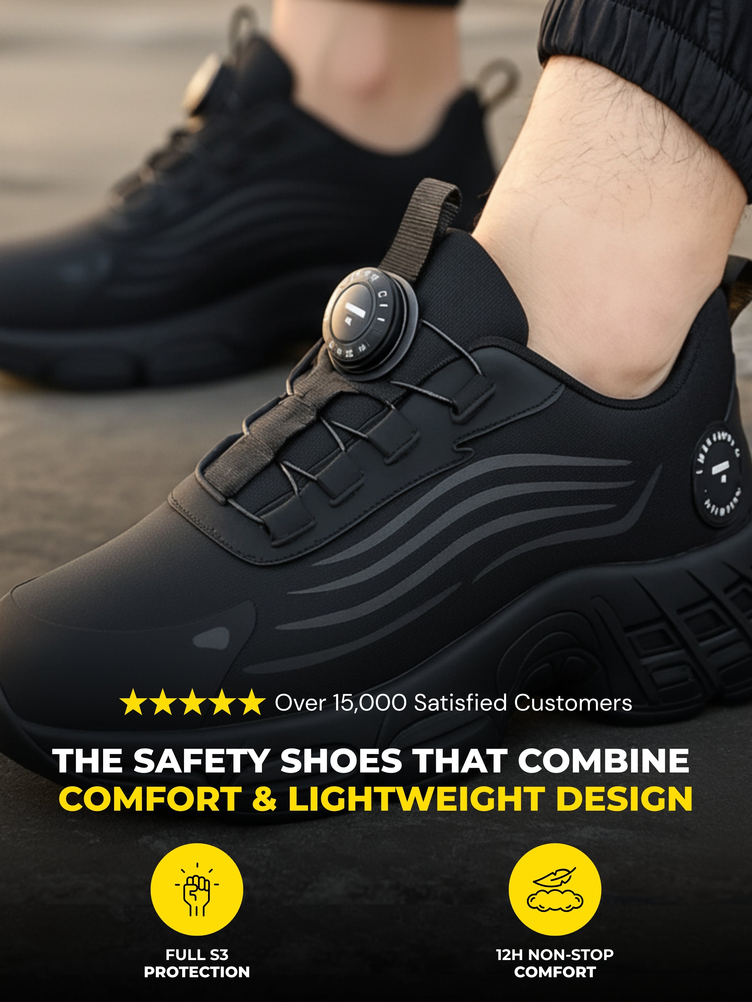 Instead of heavy, rigid safety shoes, you get a stylish pair you can comfortably wear even outside the job site.